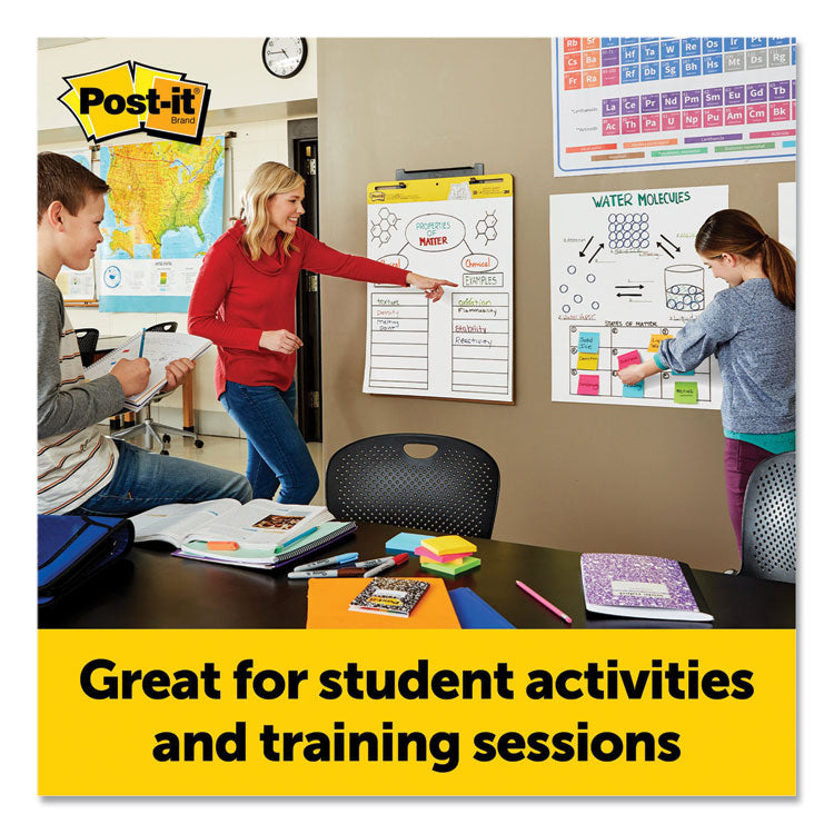Use Post-it Easel Pads to capture and share ideas. With sheets that can stick almost anywhere, Post-it Easel Pads foster the imaginative thinking that lays the foundation for future growth. So when you want to successfully plan, collaborate, and capture and build on ideas, they're ready to help you succeed. Post-it Easel Pad sheets feature premium paper that resists marker bleed-through; they stick to most surfaces and can be repositioned again and again, without surface damage. The sturdy backcard features a handle for easy portability and universal slots to fit most easel stands. Vertical-Orientation. Pocket-Sized Indicator: N; Pad-Binding Type: Stapled; Pad-Binding Edge: Top; Number of Subjects/Sections: 1.