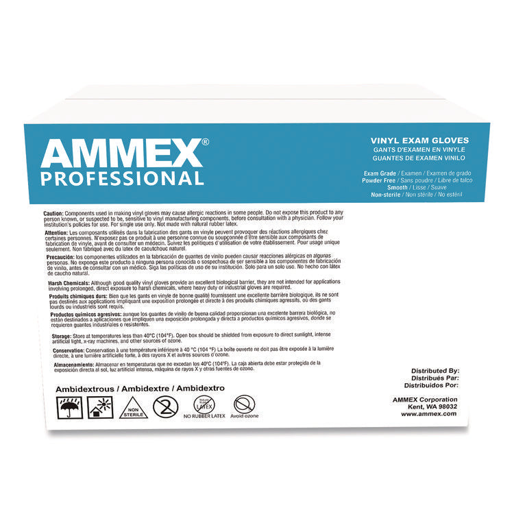 Vinyl Exam Gloves, Powder-Free, X-Large, Clear, 100/Box
