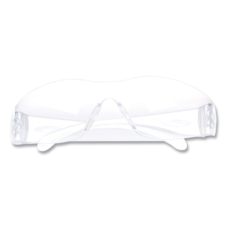 Economy safety glasses that combine style, protection and affordability to safeguard workers on jobsites. Providing a wide viewing area, the wraparound design shields to keep eyes more fully protected. Contoured temples fit comfortably and snugly without pressure points but also without any looseness that causes shifting. Recommended for use during chipping, chiseling, drilling, grinding, machining, masonry, pouring/casting, power fastening, riveting, sanding and sawing. Safety Glasses Style: Wraparound; Frame Color: Clear; Frame Material: Polycarbonate; Lens Material: Polycarbonate.