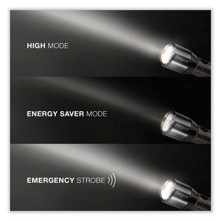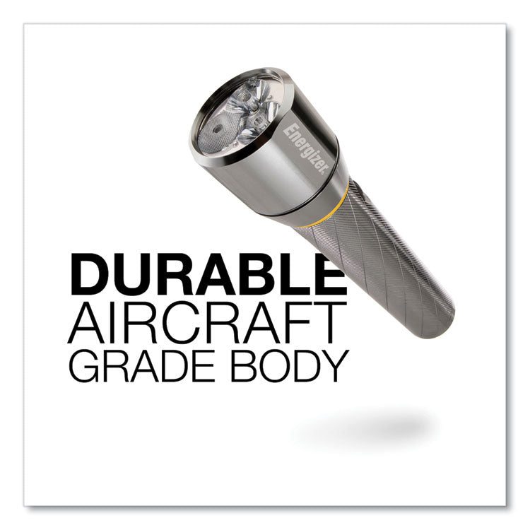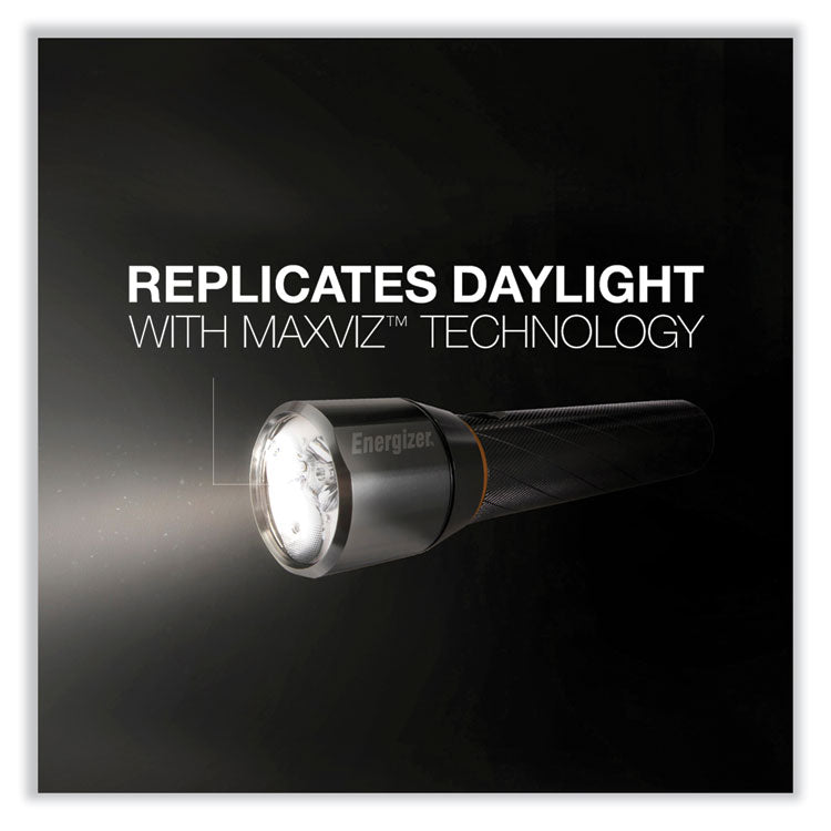 Get crisp daylight in dark spaces any time of day or night. Energizer Vision HD with Digital Focus features MAXVIZ technology for an outstanding beam that replicates natural daylight. That's a light up to 15 times brighter than standard LED technology produces. Plus, Energizer proprietary Digital Focus Technology allows you optimum control of your light, making it a bright flashlight with even better direct and peripheral vision. Early-morning fishing trips, late-night hiking, and even those unexpected blackouts from power outages will be a lot brighter with broad, high-definition vision. Simply push a button for the brilliance of daylight anytime with the Energizer Vision HD. Flashlights Type: LED; Power Source(s): 6 AA (Included); Voltage: 1.5 V; Bulb Type: LED.