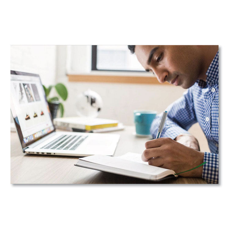 VISION Rollerball Pen, Stick, Extra-Fine 0.5 mm, Blue Ink, Gray/Blue/Clear Barrel, Dozen