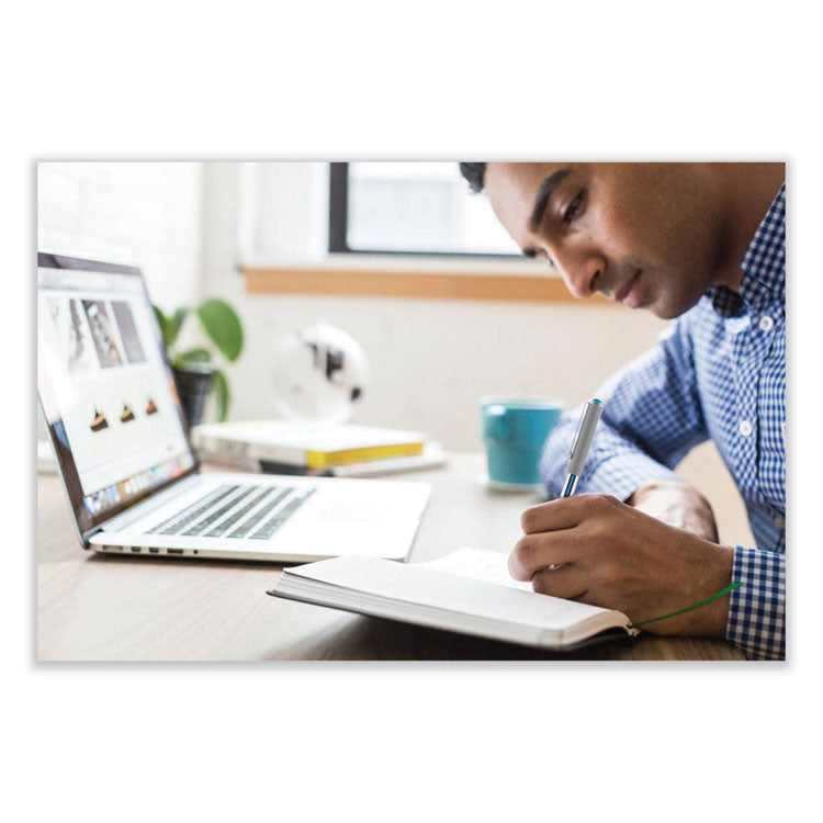 VISION Rollerball Pen, Stick, Fine 0.7 mm, Green Ink, Silver/Green/Clear Barrel, Dozen