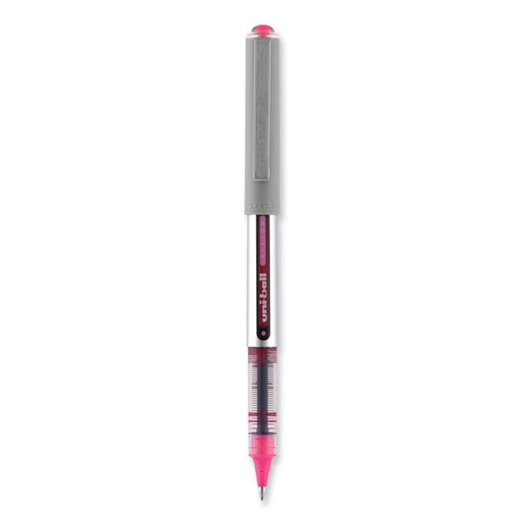 VISION Rollerball Pen, Stick, Fine 0.7 mm, Pink Ink, Silver/Pink/Clear Barrel, Dozen