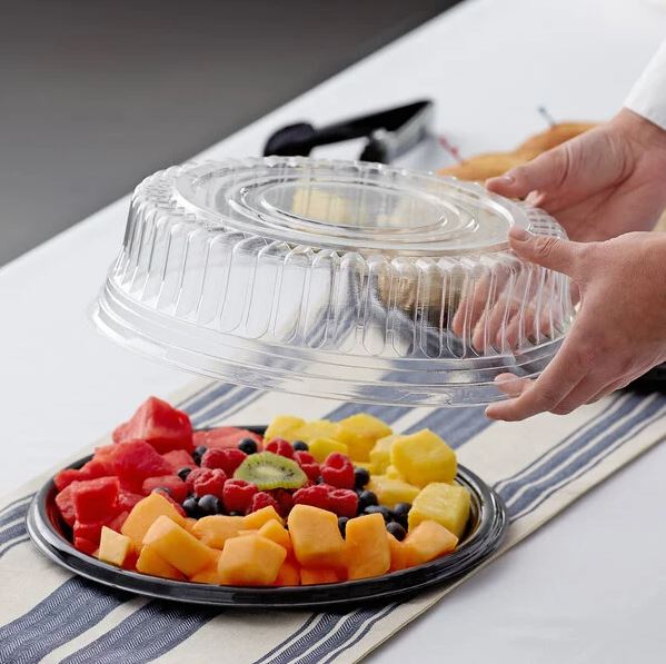 Great for grocery store displays or showcasing your culinary creations at catered events, this Visions dome lid is the perfect fit! Designed to cover Visions catering trays, you can easily transport sandwiches, baked goods, and fruit platters without worrying about spills and messes.