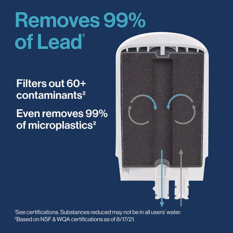 Brita Faucet Mount System filters out odors and impurities for healthier, great tasting filtered water on tap. From the world's #1 brand in water filtration, this Elite Advanced faucet mount uses Advanced Brita Carbon-block technology, is certified to reduce chlorine (taste and odor) and reduces 60+ contaminants including 99% of lead. This Brita filter system replaces 1,800 bottles a year. This certified Brita water filter system has three spray options and includes a filter indicator to tell when it's time to change, approximately three times a year. Does not fit pull-out or spray style faucets. White4.8" w x 2.26" d x 5.28" h. Water Filters Type: Faucet Filter.