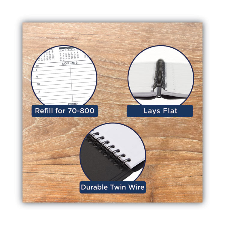 This weekly Appointment Book Planner refill will help you plan out each week in detail. It allows for easy event planning 12 months from January to December. High-quality paper features superior ink bleed resistance One week per two-page spread with hourly appointments from 8AM to 5PM Monday to Friday for comprehensive scheduling. Saturday and Sunday are split on the right hand page and are untimed for leisurely planning. Past, current and future month reference on each two-page spread for long term planning Wirebound refill pages stay secure in your Appointment Book Planner. 3.25" x 6.25" page size. Refill only. Compatible with AT-A-GLANCE Refillable Weekly Appointment Book Planner (sold separately). Dated/Undated: Dated; Calendar Format: Weekly; Calendar Spread Format: One Week per Two-Page Spread; Edition Year: 2025.