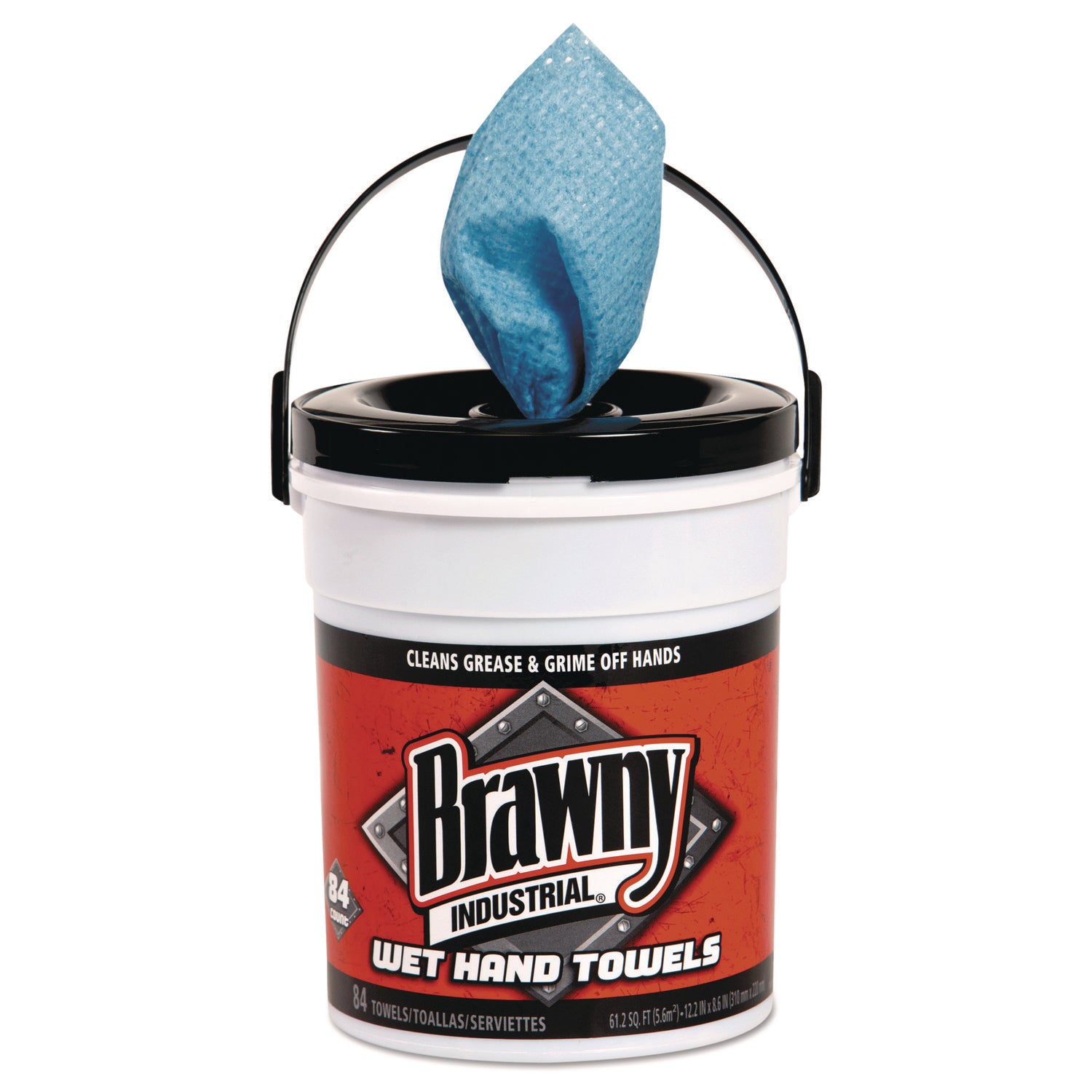 Feature cloth-like softness that allows you to easily wipe and clean greasy and grimy hands on the spot. Soft, durable and strong with no gritty residue and clean, fresh scent make these a perfect clean-up solution and portable pail with one-at-a-time dispensing and added wiper protection helps reduce waste and control costs. Material(s): Polyester/Rayon; Chemical Compound: Propylene Glycol; Number of Plies: 1; Color(s): Blue.