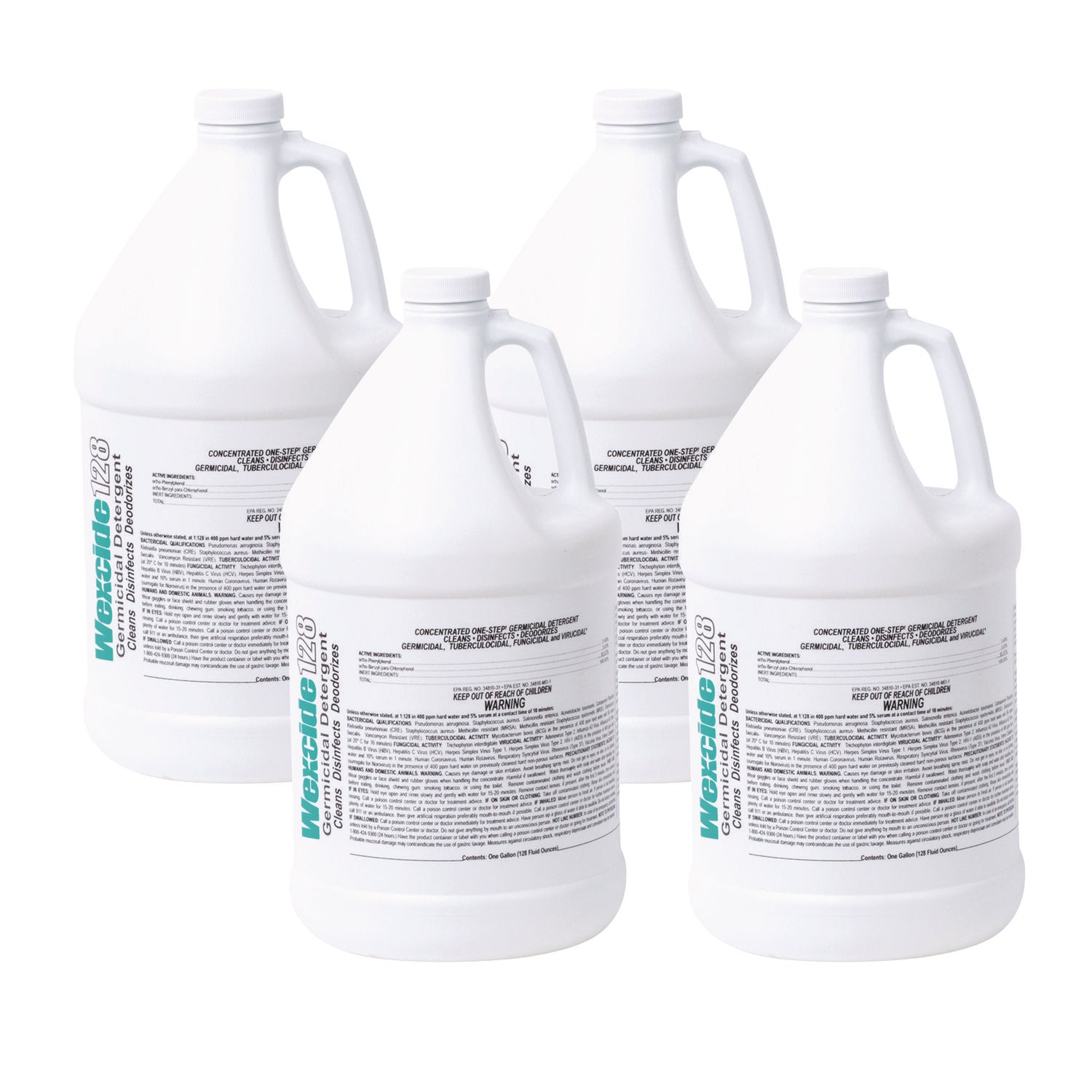 Citric-acid-based Wex-Cide concentrate is a wonderful, gentler alternative to bleach- or QUAT-based cleaners. A highly effective one-step cleaner and deodorizer, it's equipped with proven germ-killing power to decontaminate surfaces across healthcare, education and commercial environments. An excellent 1:128 dilution ratio ensures thorough cleaning and sanitizing at an economical price point. Featuring a low pH, it also helps to reduce cleaning times by minimizing the need for other cleaners and rinses. This product has been found to be effective for use against SARS-CoV-2, the cause of the COVID-19 virus. Application: Disinfectant/Cleaner; Applicable Material: Hard, Non-Porous Surfaces; Chemical Compound: Hexylene Glycol; Isopropyl Alcohol; O-Phenylphenol; Ortho-benzyl-Para-Chlorophenol; Dirt Types: Bacteria; Fungus; Inorganic Soil; Organic Soil; Tuberculosis; Viruses.
