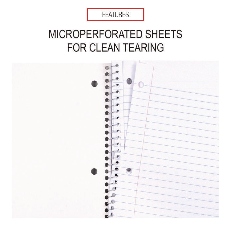 Choose this easy-carry notebook for all your note-taking needs. Durable coiled-wire binding allows you to fold back the cover to save space or to improvise a writing surface when you're away from your workspace. Twist-looped wire ends help keep bag and clothing snags to a minimum. Clearly ruled lines help encourage neat handwriting while making it easier to structure your thoughts. Micro-perforations along the binding edge of each sheet enable easy separation while keeping your work looking neat and clean. Pocket-Sized Indicator: No; Book-Binding Type: Spiral Coil; Book-Binding Edge: Side; Cover Color: Assorted.