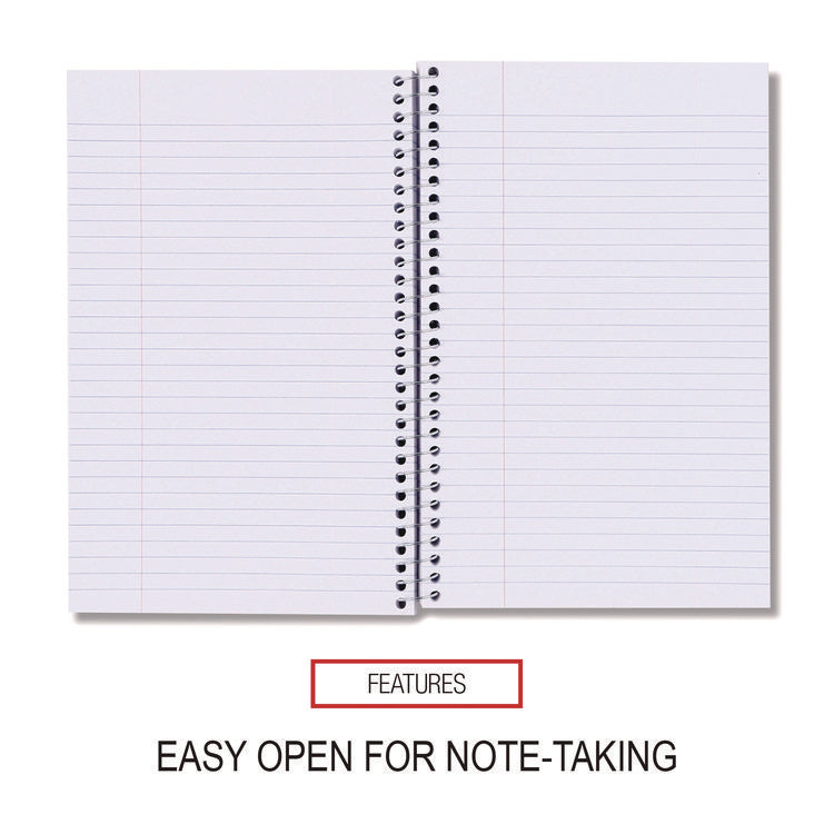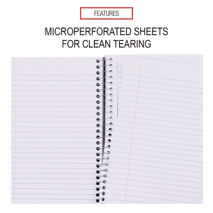 Choose this easy-carry notebook for all your note-taking needs. Durable coiled-wire binding allows you to fold back the cover to save space or to improvise a writing surface when you're away from your workspace. Twist-looped wire ends help keep bag and clothing snags to a minimum. Clearly ruled lines help encourage neat handwriting while making it easier to structure your thoughts. Micro-perforations along the binding edge of each sheet enable easy separation while keeping your work looking neat and clean. Pocket-Sized Indicator: No; Book-Binding Type: Spiral Coil; Book-Binding Edge: Side; Cover Color: Black.