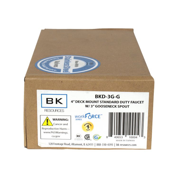 The Workforce Standard Duty Faucet with Spout and Mount is a reliable choice, featuring 1/4 turn ceramic cartridges for smooth and efficient operation. Notably, this faucet is lead-free, prioritizing safety. It complies with ANSI/NSF 61 and cCSAus standards, ensuring that it meets industry-approved quality and safety measures. With its combination of functionality and adherence to standards, this standard duty faucet is suitable for various applications where reliability and compliance are key considerations. Features: 7.88" Height/3.5" Reach; Color(s): Chrome-Plated Brass.