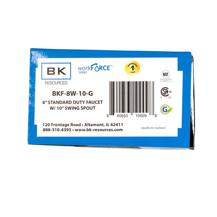 The Workforce Standard Duty Faucet with Spout and Mount is a reliable choice, featuring 1/4 turn ceramic cartridges for smooth and efficient operation. Notably, this faucet is lead-free, prioritizing safety. It complies with ANSI/NSF 61 and cCSAus standards, ensuring that it meets industry-approved quality and safety measures. With its combination of functionality and adherence to standards, this standard duty faucet is suitable for various applications where reliability and compliance are key considerations. Features: 8" Height/10" Reach; Color(s): Chrome-Plated Brass.