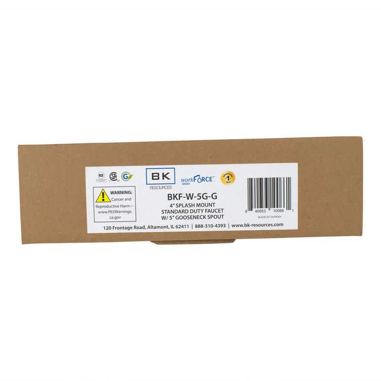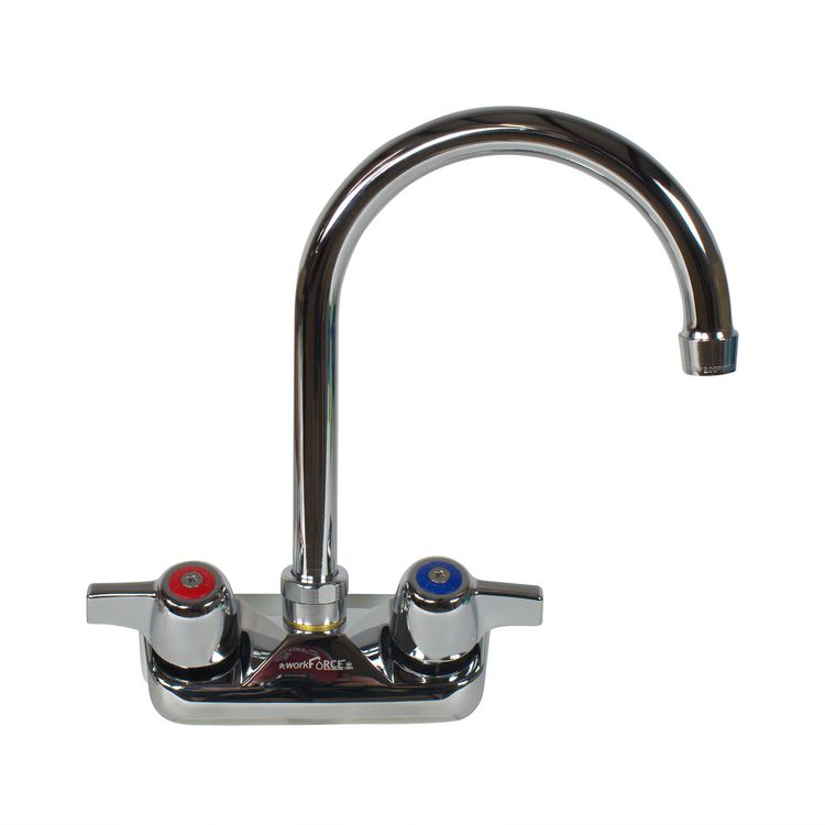 The Workforce Standard Duty Faucet with Spout and Mount is a reliable choice, featuring 1/4 turn ceramic cartridges for smooth and efficient operation. Notably, this faucet is lead-free, prioritizing safety. It complies with ANSI/NSF 61 and cCSAus standards, ensuring that it meets industry-approved quality and safety measures. With its combination of functionality and adherence to standards, this standard duty faucet is suitable for various applications where reliability and compliance are key considerations. Features: 9.5" Height/5" Reach; Color(s): Chrome-Plated Brass.