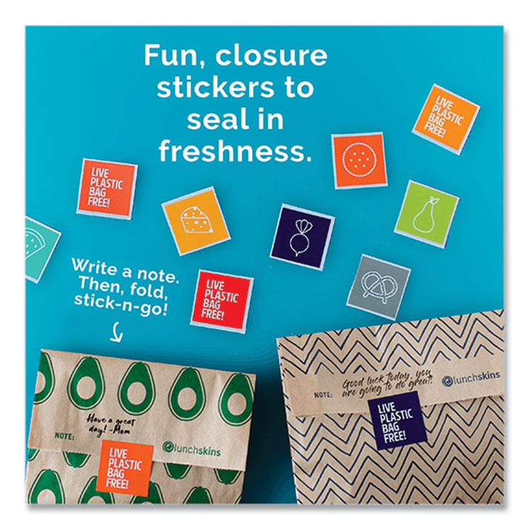 XL Sandwich Bag with Resealable Stickers, 7.1" x 2" x 9.1", Black Stripes/Natural Kraft, 50/Box