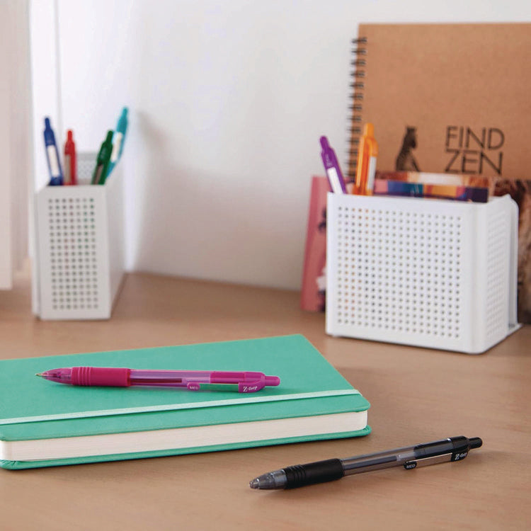 Looking for an everyday tool that doesn't look or perform like one? The Z-Grip Ballpoint Retractable Pen delivers on all fronts: value, performance, comfort, and style. There's no need to compromise on any of the attributes you like in your pens as the Z-Grip Retractable Ballpoint Pen features silky smooth easy-glide ink for a skip-less writing experience, a comfort ridged grip and a pocket clip for durability. Housed in a plastic barrel with a fun, fashionable look and retractable design, this ballpoint pen is the perfect choice for your home, school, workspace, small business, or traditional office. You'll feel the difference when you write, but not at the cash register. Pen Sub-Brand & Product Family: Z-Grip®; Pen Type: Ballpoint Pen; Pen Style: Retractable; Pen Tip Type: Conical.